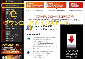 DORA麻雀の公式ホームページに入り、左側のメニュー一覧から